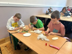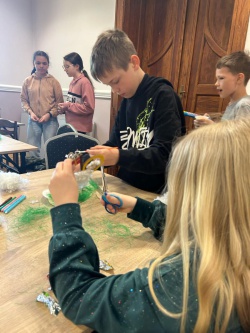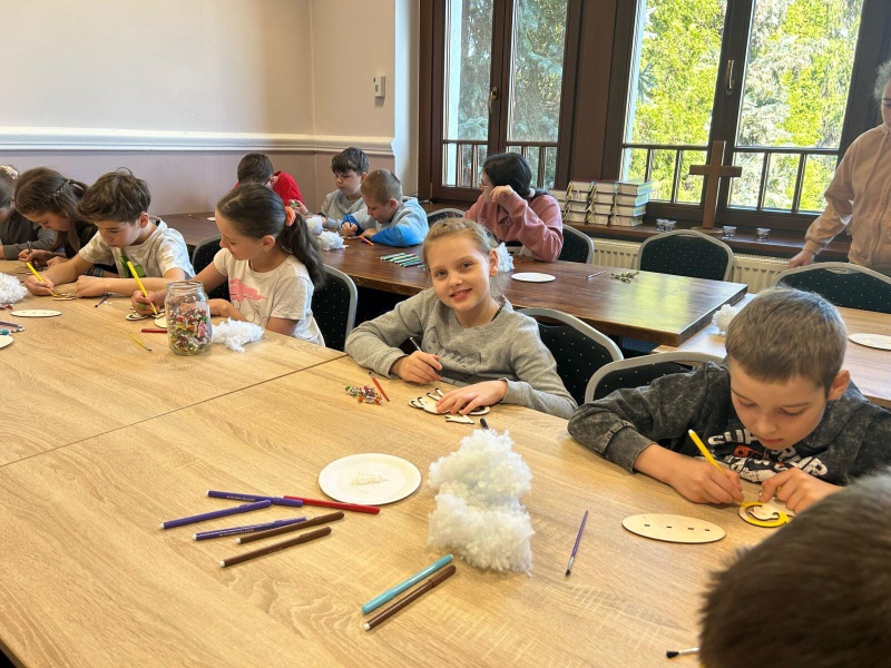 Następnym punktem po wspólnym uwielbieniu Boga naszym śpiewem były zajęcia w grupach. Młodsze dzieci wzięła pod swoje skrzydła nasza pastorowa Ewa Cieślar. Była lekcja biblijna o tym, że Pan Jezus był inny niż wszyscy ludzie, były prace plastyczne – baranki przygotowane przez panią Olę i konkurs, co dzieci zapamiętały z opowiadanej historii, gdzie punktami dla każdej drużyny były cukierki.