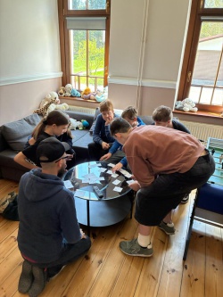 Starszymi pociechami zajął się pastor Bartosz Cieślar. Na zajęciach rekolekcyjnych poznawaliśmy się, rozmawialiśmy i pracowaliśmy w grupach – np. starając się wejść w rolę Piotra apostoła gdy zaparł się naszego Pana. Kulminacyjnym punktem spotkania w starszej grupie było (dosłownie) przybicie na krzyżu karteczek z naszymi ciężarami i spalenie ich.